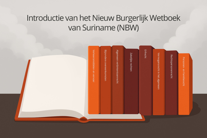 Het Nieuw Burgerlijk Wetboek (NBW) van Suriname is op 1 mei 2025 in werking getreden, precies 156 jaar na de invoering van het oorspronkelijke Burgerlijk Wetboek. Dit nieuwe wetboek, bestaande uit 8 boeken, biedt een compleet nieuwe jas voor ons rechtssysteem.